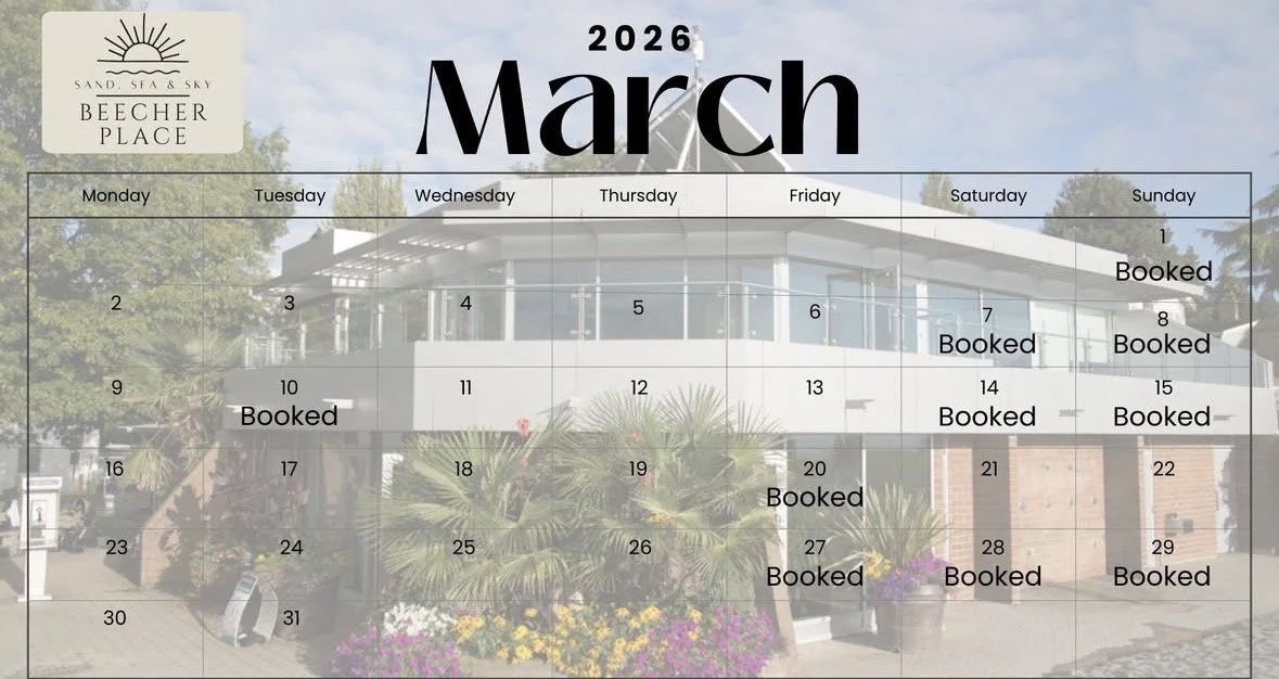 If you're looking to have your event at Beecher Place next month, now's the time to book!