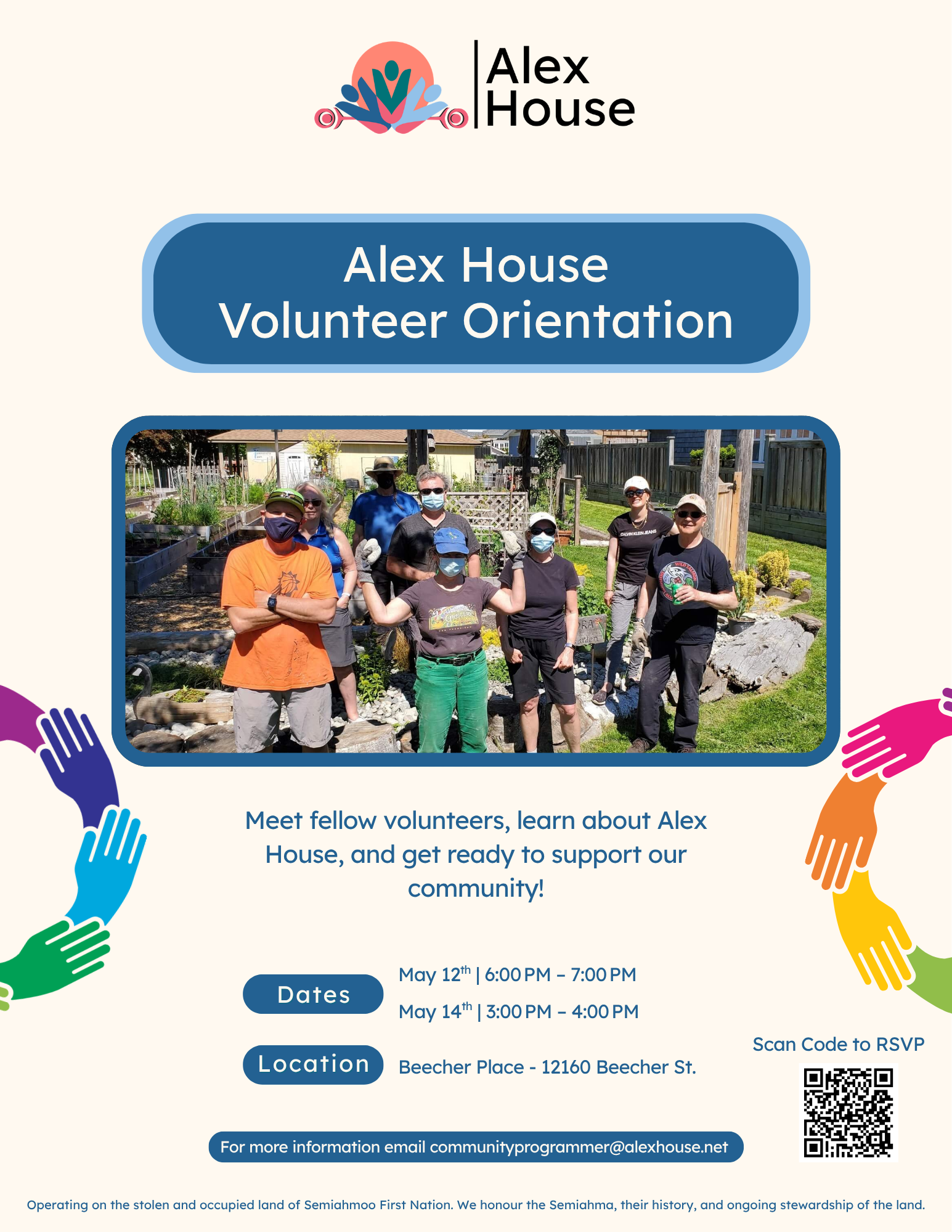 Interested in giving back to your community? Join us for our upcoming Volunteer Orientation and learn how you can get involved at Alex House!