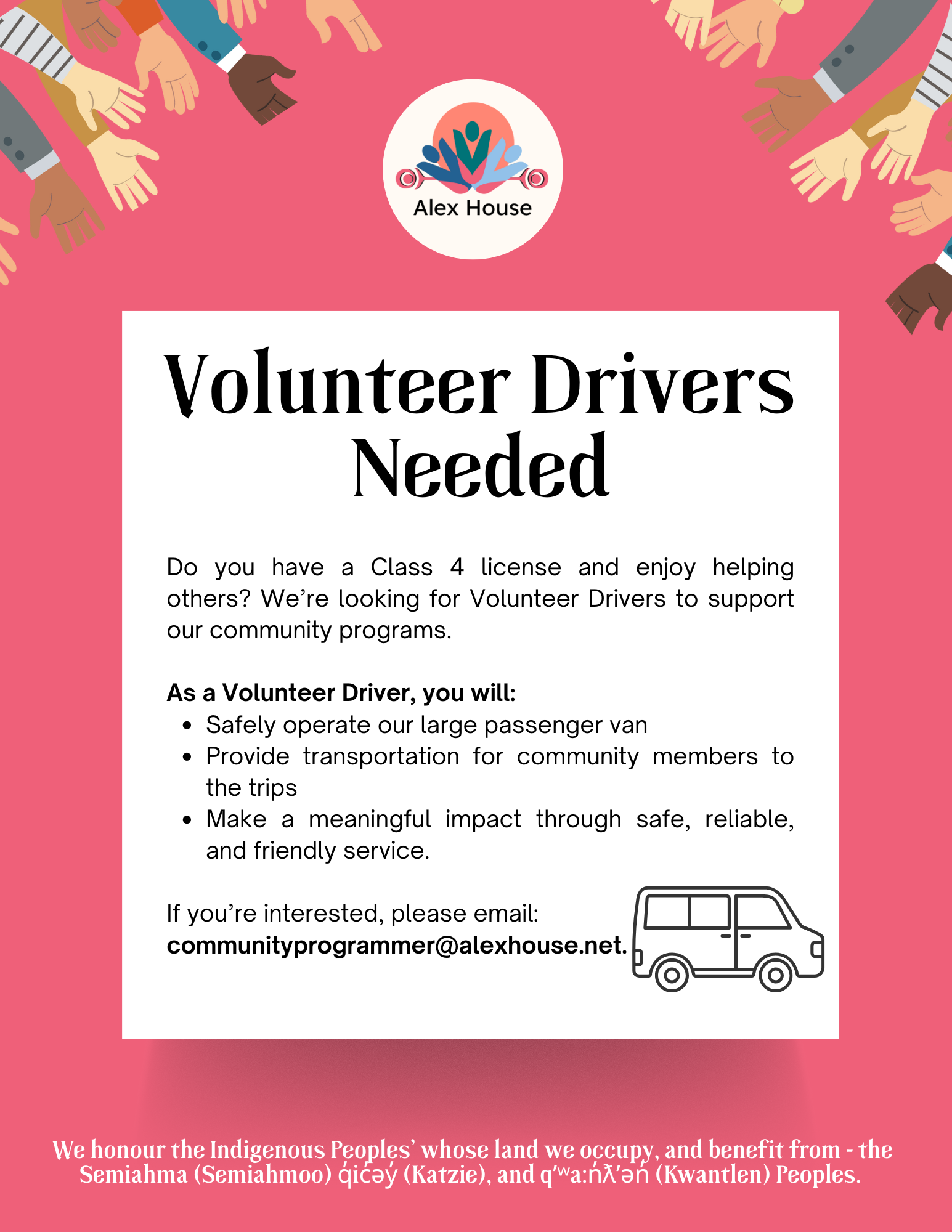 Please also see the About Us section of the Alex House website for more information about Neighbourhood Houses, our social justice approach and our commitment to Truth and Reconciliation.
